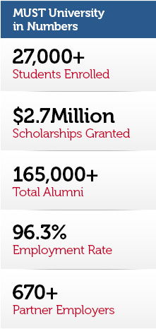 Start your application process. Sign up through Facebook or fill out our simple and easy to use application form to enroll at Must University and become eligible for our limited time scholarship!